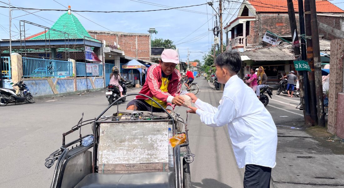 Aksi simpatik ini menyasar para pengayuh becak, petugas kebersihan, hingga pengendara ojek online yang melintas sekitar sekolah.